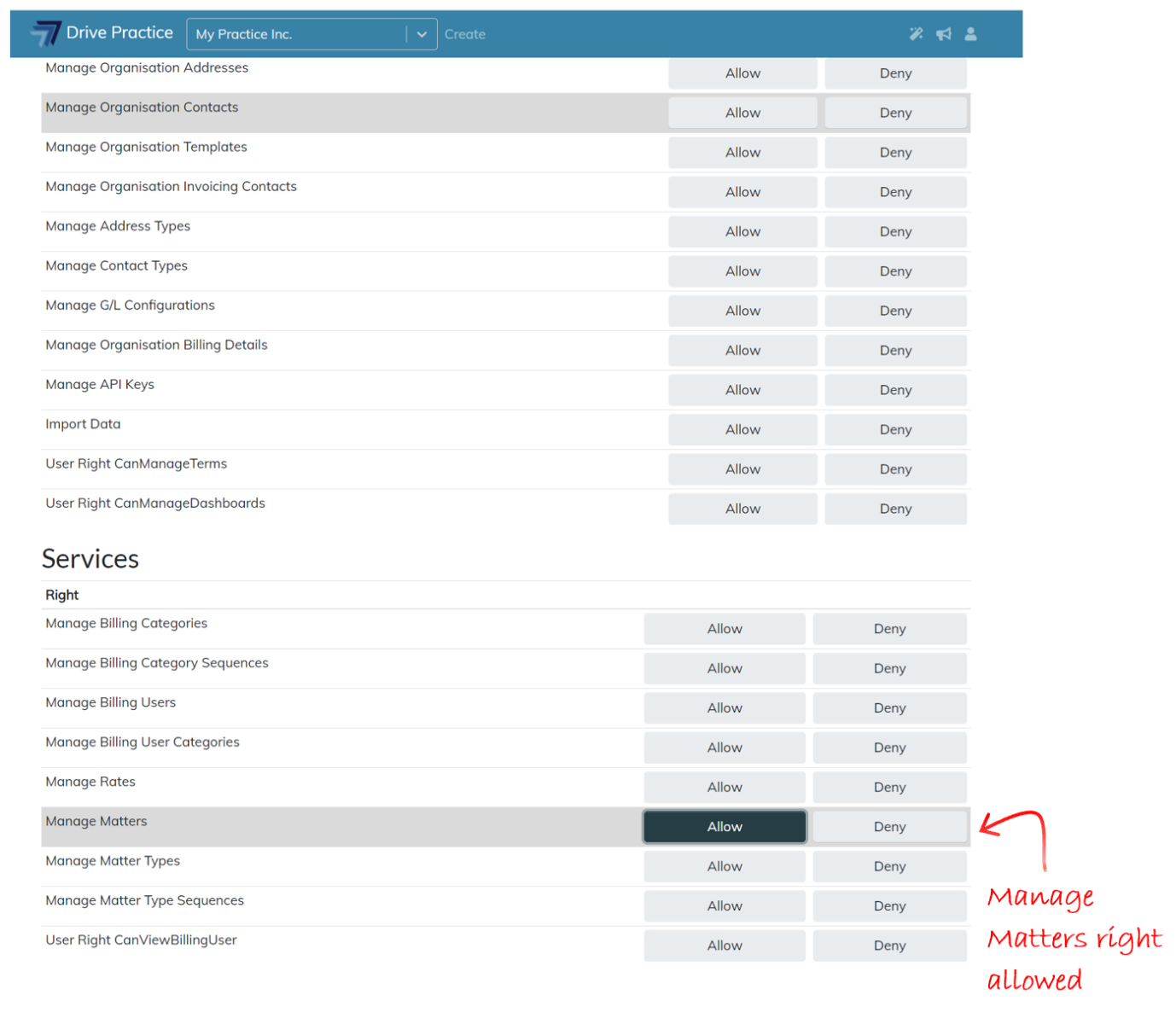 To create a client invoice from a Matter, a user requires the Manage Matters right AND the Manage Client Invoices right allowed on their user profile or inherited from an assigned group user profile.